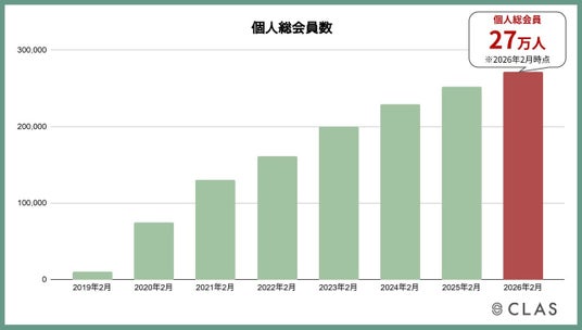 株式会社クラスは、「“暮らす”を自由に、軽やかに」をビジョンに、耐久消費財の循環型プラットフォームを運営。個人向け家具と家電のレンタル・サブスク『CLAS』をはじめ、法人向けオフィス構築・移転支援『CLAS Biz』、不動産物件向け『CLASホームステージング』など、多角的に事業を展開しています。個人向け総会員数27万人、法人アカウント数3,500件(2026年2月時点)。