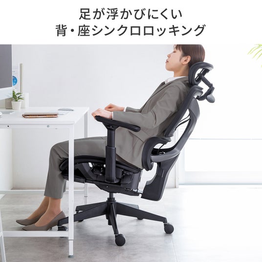 背座シンクロロッキング方式を採用しており、かかとが浮きにくくより高いリラックス感を得られます。体重感知式で座った人に合わせてロッキングの硬さを調整してくれます。