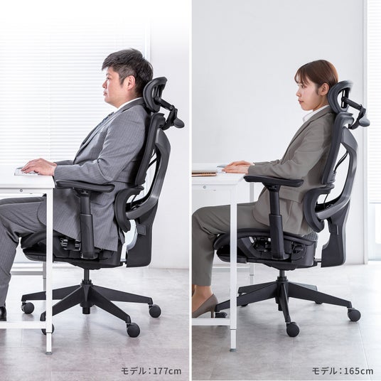 足が地面につきやすく安定して座ることができる、サンワサプライが企画した日本人向けのチェアです。