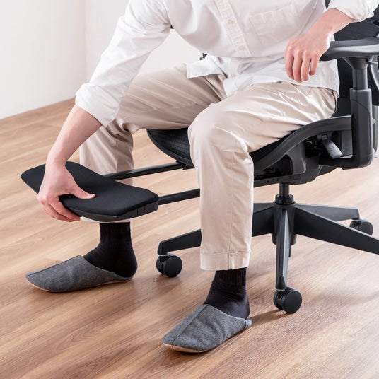 薄型でスッキリとした設計のスライド式フットレストを内蔵。足先まで伸ばしてくつろぐことができます。サッと引き出して、未使用時はコンパクトに収納できます。