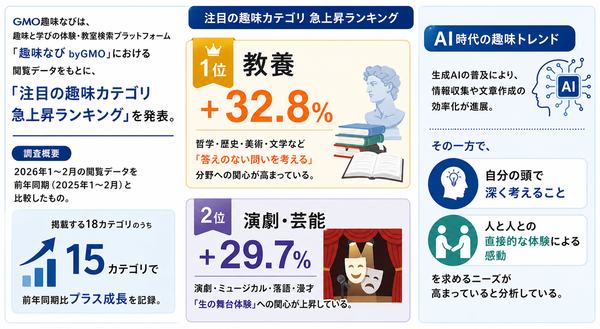 それが、「答えのない問い」に向き合う営みへの関心の高まりだ。注目の趣味カテゴリを調べたとある調査によると、「教養」分野への関心が大きく高まっているのだという。具体的には、哲学や歴史、美術、文学といった解釈や思索のプロセスそのものを必要とするジャンルだ。