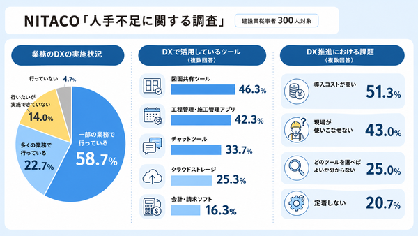 建設業のDXに関する調査を見ると、オフィスワークのDXとは、少々違った景色が見えてくる。