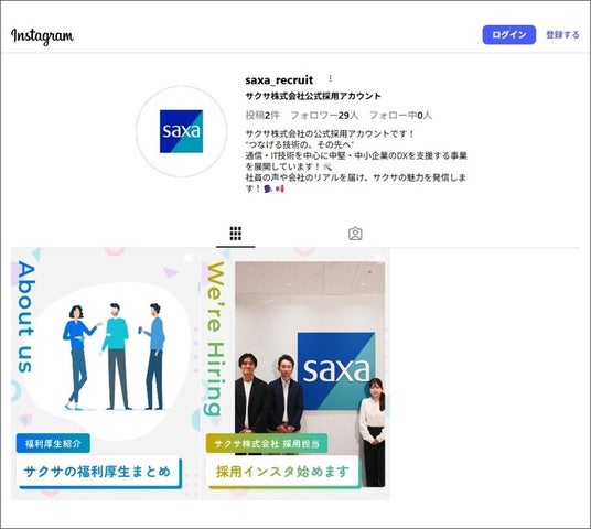 サクサ株式会社(以下、サクサ)は、採用情報発信の強化を目的として、公式採用Instagramアカウントを開設いたしました。本アカウントでは、社員インタビューや職種・オフィスなどのコンテンツを通じて、サクサで働く一人ひとりの姿や社内の雰囲気をお伝えし、当社の魅力や社風をより身近に感じていただける情報を発信してまいります。ぜひフォローのうえご覧ください。