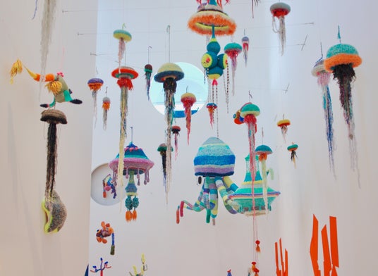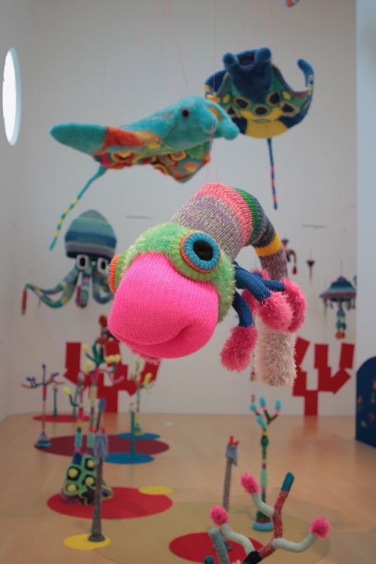 あざみ野こどもぎゃらりぃ2026出品作家 編み師 203gow(横須賀美術館<へんなあみもの203gow編んだ~わーるど展> /2017より展示風景)