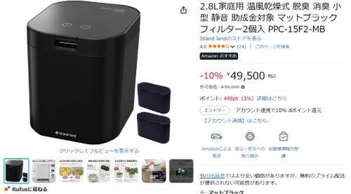 パリパリキューの生ゴミ処理機「PPC-15F2-MB」がAmazonで割引対象。参考価格55,000円のところ、10%オフの49,500円で販売中。