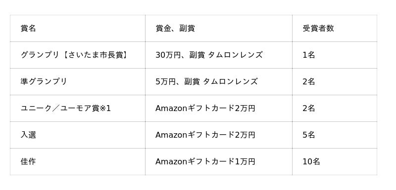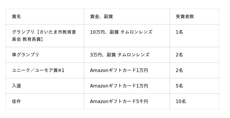 2万円以下の賞金は、Amazonギフトカードの贈呈をもって代えさせていただきます(全部門共通)。