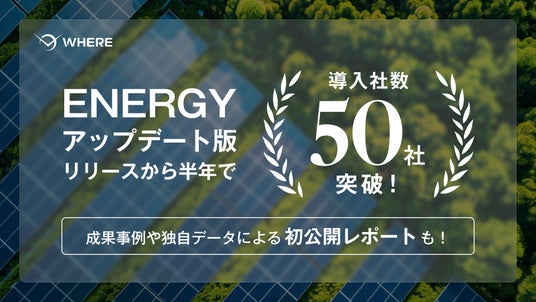 株式会社WHERE(本社:東京都文京区、代表取締役CEO:阿久津 岳生)が提供する、地権者とつながる不動産AIツール『WHERE』において、再生可能エネルギー事業者の導入社数が50社を突破したことをお知らせいたします。