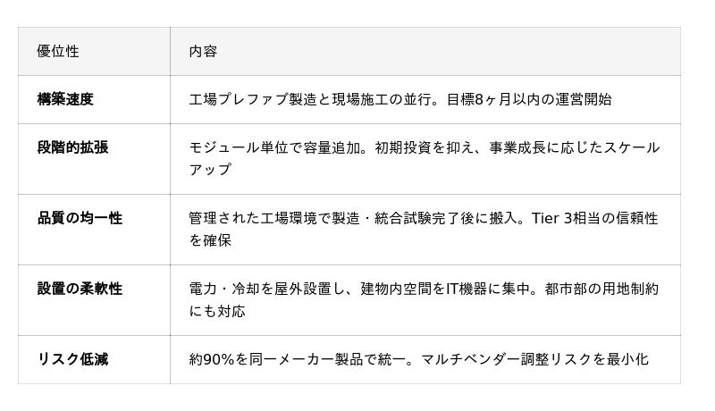 DC施設の開発投資案件。モジューラー型による段階的投資でリスクを低減