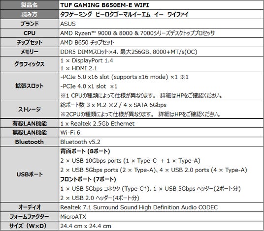 「ROG CROSSHAIR X870E DARK HERO」「TUF GAMING X870-PRO WIFI7 W NEO」「TUF GAMING B650EM-E WIFI」