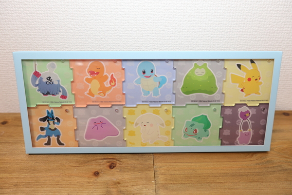 メタモン&フワンテ、ピカチュウ(うすいろ)、カビゴン(こけむし)、ルカリオ、モジャンボ(はかせ)の全5種がデザインされたアクリルパズルキーホルダー。