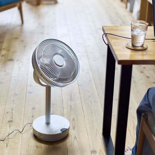 操作は支柱中央に配置されたダイヤルで行います。しゃがむことなく操作でき、風量は無段階で調整が可能です。また、風量調整時に操作音が発生しない設計のため、静かな環境でも操作音を気にすることなく快適に使用可能です。