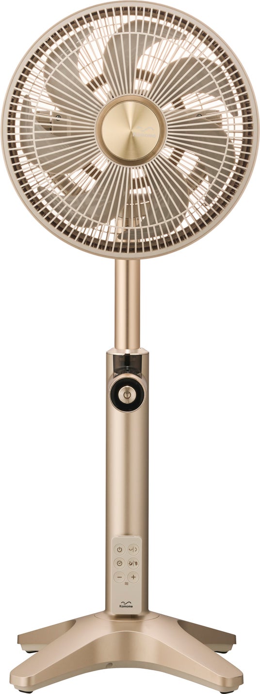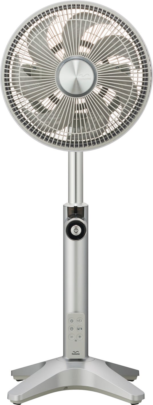 「Kamomefan+cシリーズ」の中で一番小さなモデル。上下左右の3D自動首振り搭載で、様々な方向に風を送ります。別売りのGenki Pack と合わせて使えば、コードレス扇風機に早変わり。コンパクトな形状ながら、20メートル先まで風を届けることができます。