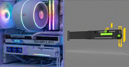 PCケースに取り付けることにより、グラフィックボードの重みによるマザーボードへのダメージを防止。左右、高さの位置調整ができるため、幅広いグラフィックボードに対応します。