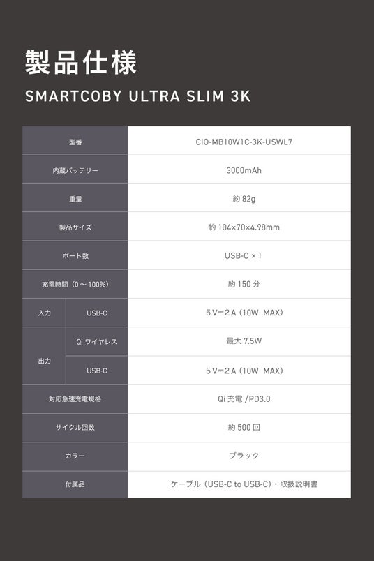 ・製品名:SMARTCOBY ULTRA SLIM 3K