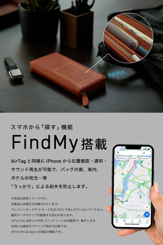 ■Appleの「Find My(探す)」対応AppleのFind My(探す)に対応したなくしもの防止タグを内蔵。iPhoneから位置確認・通知・サウンド再生で追跡でき、カバンに入れておけば万が一の置き忘れ防止にも役立ちます。さらに、モバイルバッテリーを使い切ってもFind My機能は約2か月動作し、製品を充電するたびにFind My側も同時に充電されます。