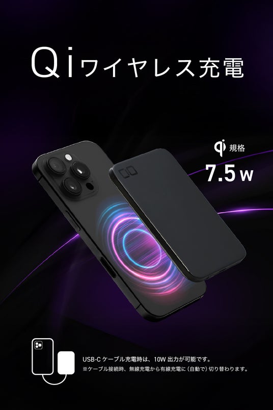 ■ Qiワイヤレス出力(MagSafe対応)MagSafe対応で、スマホにピタッと吸着するだけで7.5Wの