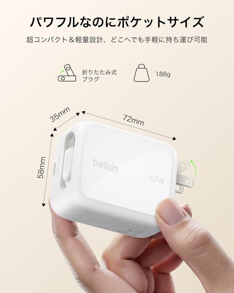 気づけば、バッグの中からケーブルを探す時間が消えている。このBelkinの充電器、派手さはないのに満足度だけやたら高いんですよね。結局こういう「これでいい」が一番強い……そう思わせてくる一台です。