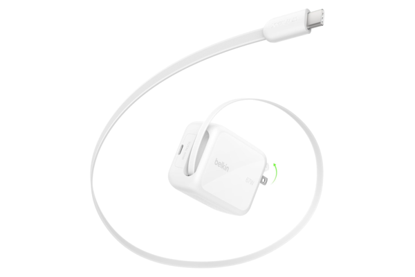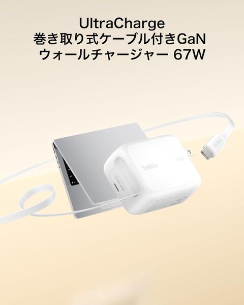 外出時の充電って、だいたい「ケーブルどこいった?」から始まります。バッグの奥で絡まるケーブル、別ポーチに入れたはずのケーブル、そしてホテルで気づくケーブル忘れた問題。そんな“あるある”に終止符を打ちにきたのが、Belkinの「UltraCharge GaN充電器67W(巻き取り式ケーブル付き)」です。