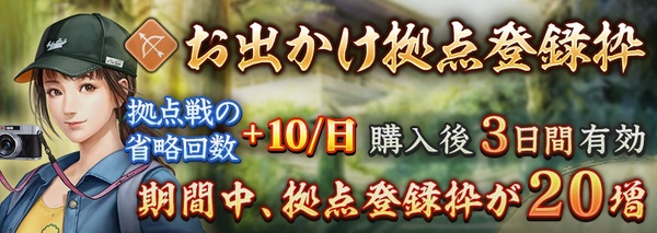 ・有効期間中、拠点戦の合戦省略回数のログインによる回復量および上限が増加