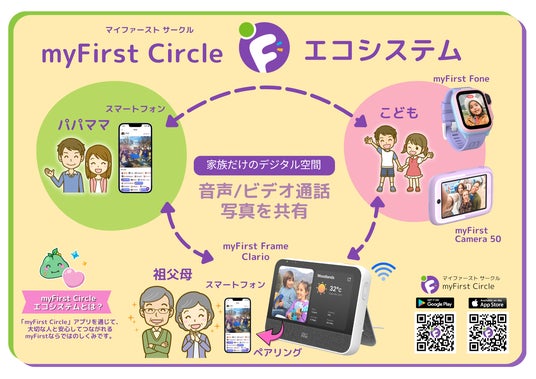 「myFirst Frame Clario」は、その中心的な存在として、見守り用キッズスマートウォッチ「myFirst Fone」や「myFirst Camera」などと連携しながら、家族のコミュニケーションを支える役割を担います。