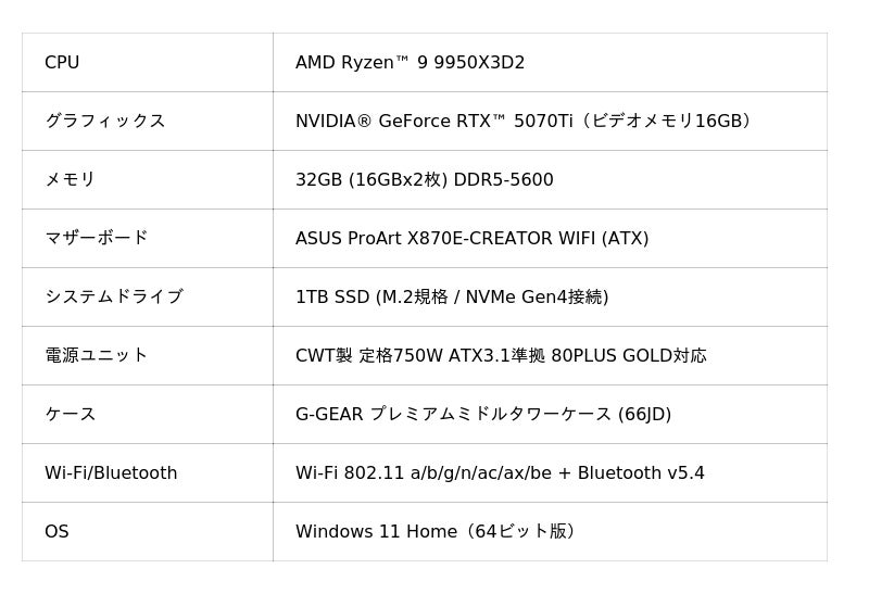 株式会社ヤマダデンキ(本社:群馬県高崎市、代表取締役社長:佐野 財丈)は、TSUKUMO(ツクモ)ブランドで独自に展開するゲーミングPC「G-GEAR」において、AMD Ryzen(TM) 9 9950X3D2 プロセッサを搭載したゲーミングPCを、4月24日(金)に発売いたしました。