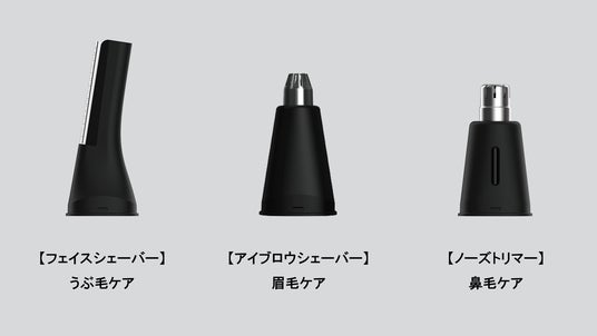 2.3種類の付け替え可能なアタッチメント(刃)で繊細な調整ができ、1本でフェイスシェーバー(うぶ毛ケア)・アイブロウシェーバー(眉毛ケア)・ノーズトリマー(鼻毛ケア)の3役をこなします。