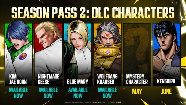 Season Pass 2では、『餓狼伝説』シリーズより「キム・ジェイフン」「ナイトメアギース」「ブルー・マリー」「ヴォルフガング・クラウザー」の4キャラクターに加え、アニメ『北斗の拳 -FIST OF THE NORTH STAR-』よりケンシロウの参戦が決定している。