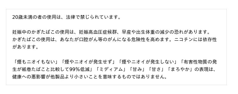 BATグループでは、たばこ製品のマーケティングを適切に実施するために国際的な自主規準を設定しています。そのため消費者に対するたばこ製品に関するすべてのコミュニケーションには、20歳未満の方へのコミュニケーションをお控えいただくとともに、「喫煙と健康に関する注意文言」を表示することを関係各位にお願いしております。オーラルたばこに関しては、記事掲載していただく際には、「健康に関する注意文言」が表示されるようご配慮いただきたく存じます。ご協力の程、何卒よろしくお願い申し上げます。