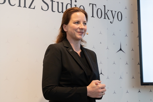 続いてメルセデス・ベンツ日本合同会社のアイケルカンプ・サブリナ営業企画部門ディレクターが登壇。なんと、今夏発売予定の新型「CLA」についてプレゼンテーションを行ないました。英語によるプレゼンテーションゆえ、生粋の日本人である不肖にはチンプンカンプンでしたが、ザックリとご紹介します。