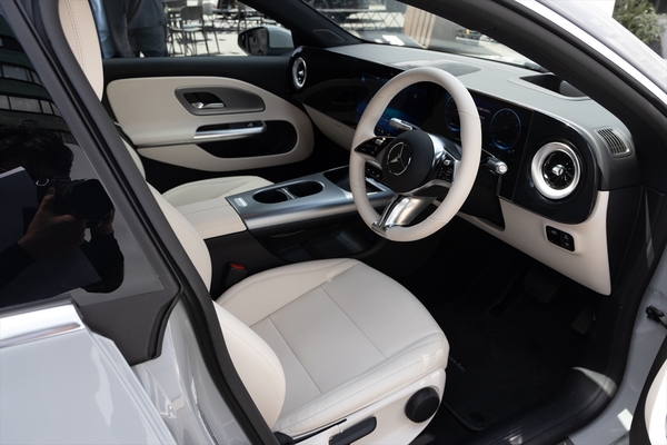 屋外にはCLAのマイルドハイブリッドモデルが展示されていました。それほど大きなモデルではないので、日本の道に合いそうな予感がします。メルセデスらしい上質な室内は、若々しさの中に大人の余裕が感じられるもの。