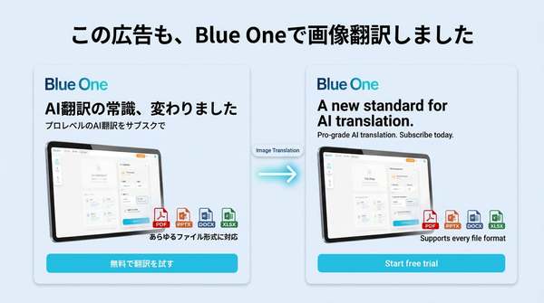 AI翻訳サービス「BLUE ONE」、画像翻訳機能を正式リリース デザインを維持したまま画像内テキストを自動変換
