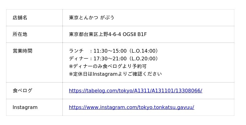 株式会社GAVRIFOOD(本社:東京都中央区銀座、代表取締役社長:大沼康宏)が運営する『東京とんかつ がぶう』は、本日2026年4月25日(土)に1号店オープンから1周年を迎えました。