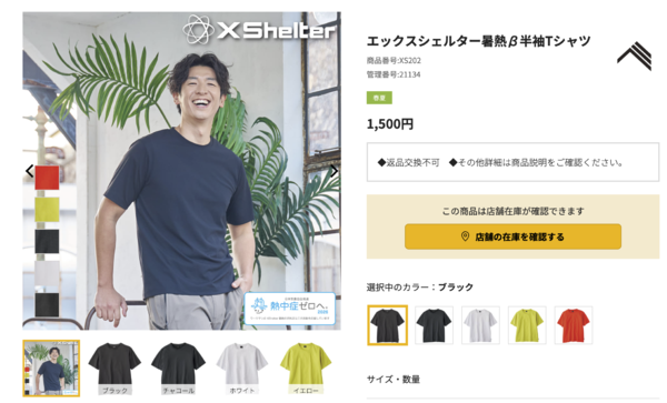 最新作となるのが「暑熱Ω」で、東レの新素材を採用しているのが特徴。今年はまだカジュアルラインがなく、プロ向けの作業着となっているとのことです。面白いのは、全てに暑熱Ω素材を使うのではなく、部位によっては暑熱α素材を併用することで、高い遮熱性、通気性、気化冷却、速乾性などを実現していること。これにより、暑熱αを超える暑熱軽減ウェアとなっているとのこと。