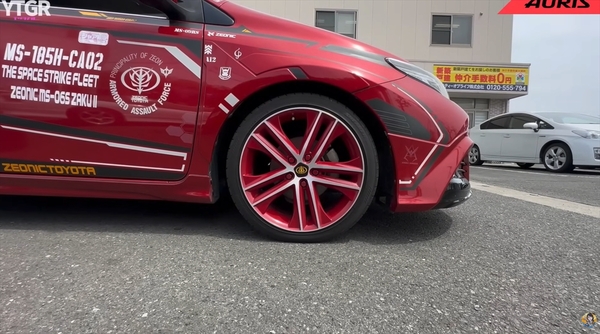 フロントにはトヨタマークではなく、「ジオニックトヨタ」のエンブレムが鎮座しています。オタク心をわかってやがる! ジオニックトヨタの社員め……!