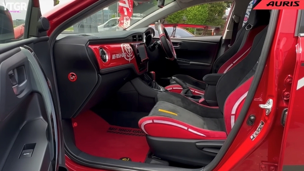 足元も抜かりなし! 専用のアルミホイールは、センターキャップにジオニックトヨタのロゴが入り、リムには赤いラインが入っています。