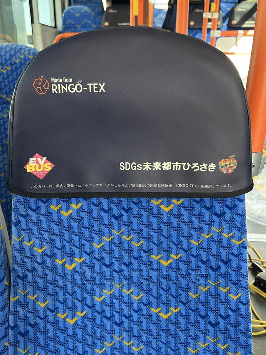 公共交通機関におけるサステナビリティ推進として、弘前市のEVバスおよび六ヶ所村の観光バスの座席ヘッドレストカバーに「RINGO-TEX(R)」が採用されています。