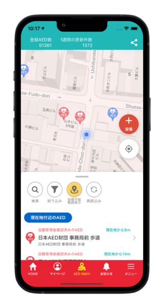 心肺蘇生に使う機器AEDは、国内に約67万台ほど設置されているものの、その所在が十分に把握されておらず活用が進んでいないという課題がある。今回の取り組みはAEDの設置場所にゲーム内の重要スポット「ポケストップ」を配置することで、よりAEDの位置情報を身近にすることを目的としている。