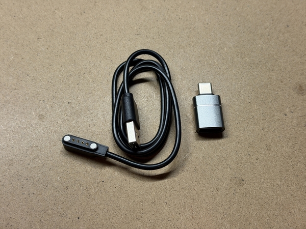 唯一の懸念点が充電ケーブル。独自の磁気コネクターを採用しており、USB Type-Cへの変換アダプターは同梱されているものの、ケーブル自体はUSB Type-A端子だ。2026年の製品として設計の古さを感じる部分ではある。