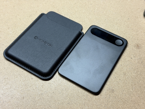 Comulytic Note Proを手に取った瞬間の第一印象は「軽い」という感想。重さ27.6g、サイズは約85.6×51.9mm、厚さわずか3mm。アルミ削り出しのボディーはフラグシップスマートフォンを彷彿とさせる質感で、カードとともにケースに滑り込ませても違和感がない。
