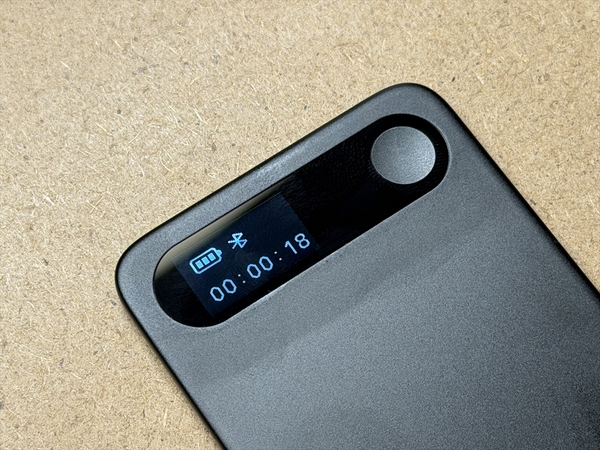 ディスプレーは0.78型と小さいが、バッテリー残量・Bluetooth接続状態・録音時間をひと目で確認できる。ゴリラガラスで保護されており、会場内でのラフな扱いにも耐えてくれそうな安心感がある。