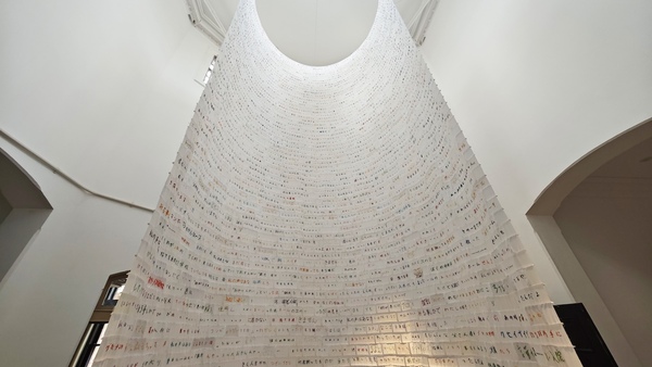 特に目を引くのは、西尾美也氏の『声を縫う』という参加型アート。受刑者が残した詩を、市民や学生など200人以上の手で刺繍して繋いだもので、重いテーマを扱いながらも思考を広げる空間となっています。