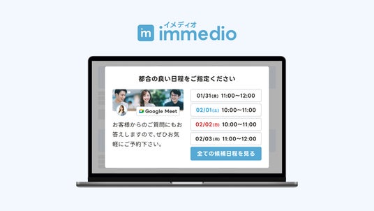 immedioはこれまで、GoogleカレンダーおよびMicrosoft Outlookカレンダーとの連携を通じて、問い合わせ直後に商談日程を確定できる仕組みを提供してきました。今回の連携により、こうした課題を抱える中堅・大企業にも、問い合わせ直後に商談を確定できる環境を提供します。