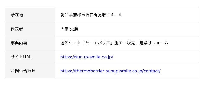 遮熱シート「サーモバリア」の専属施工会社である株式会社SUNUP(本社:愛知県蒲郡市、代表取締役:大葉史勝、以下「サナップ」)は、空調気流シミュレーションを手がけるファシラボ(所在地:愛知県岡崎市、代表:稲熊亮司)と連携し、「遮熱施工×空調シミュレーション」によるCO2削減ワンストップサービスを提供開始しました。
