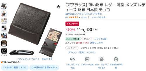 abrAsusの「薄い財布」がAmazonでタイムセール対象。参考価格18,200円のところ、10%オフの16,380円で販売中。
