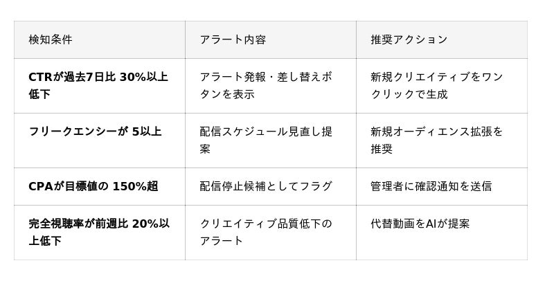 - クリエイティブ疲弊(Ad Fatigue)の検知が遅れ、広告効果の低下に気づくまでに予算を無駄に消化してしまう
