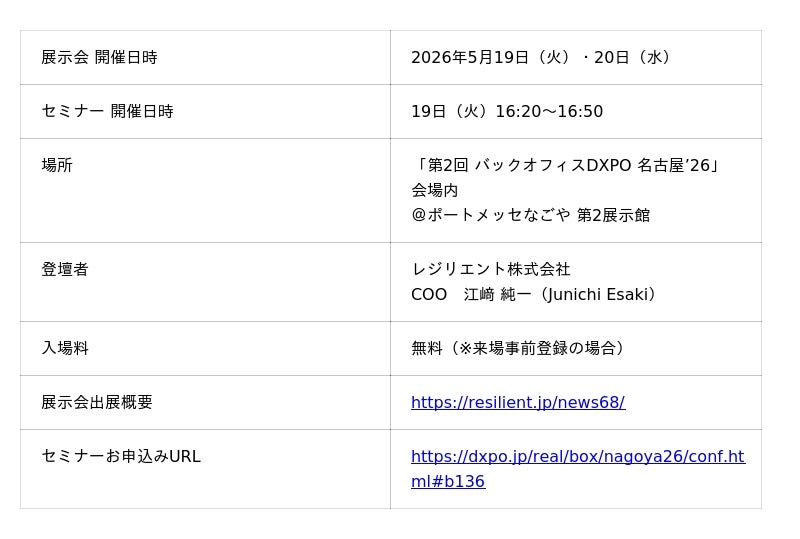 また、本構想の発表に合わせ、2026年5月19日(火)より開催される「バックオフィスDXPO’26 名古屋」にて、初の特別セミナーを開催いたします。