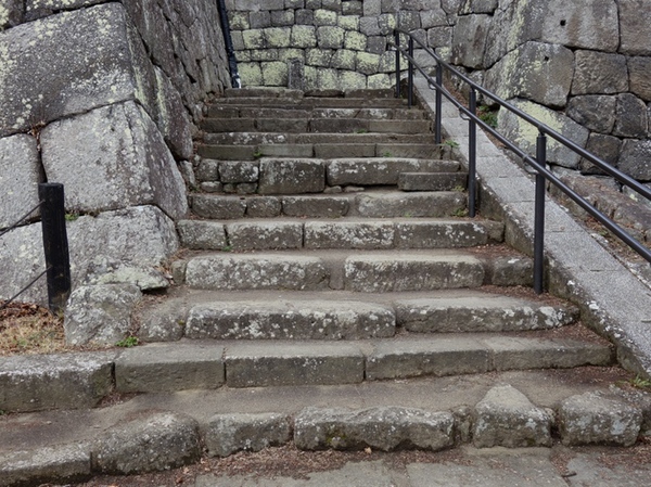小峰城へと続く石段を登る際、奥行きと高さがところどころ違うので、何度か転びそうになりました。これは敵が攻め込みにくいように、あえて段差をバラバラに作っているんだとか。なるほど!