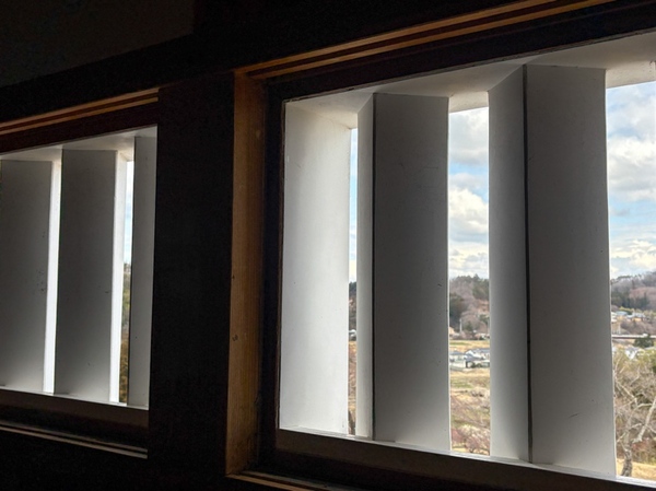 三重櫓の壁には、鉄砲や弓で敵を攻撃するための「狭間(さま)」と呼ばれる、窓のようなものがあります。中から外は見えるけど、外から中は見えない、防御のための構造。写真だと伝わりにくいのですが、のどかな白河の街並みが見えて、ホッとする時間でした。