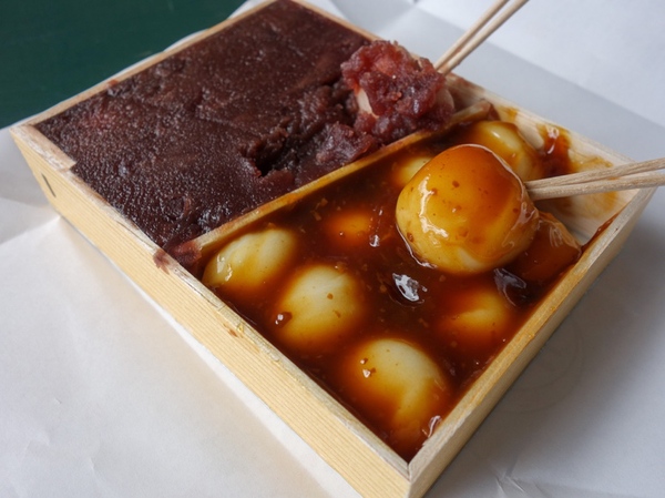 あんことみたらしが半々入った2色の「折詰団子」小を買いました。爪楊枝2本を刺して食べるのが南湖だんご流。団子はもっちもち。みそ味のみたらしが濃厚でクセになるおいしさ。あんこも甘すぎず、かなり好みでした。残ったあんこを爪楊枝ですくって食べてしまったほどです。翌日、2箱買いに行ってしまいました。