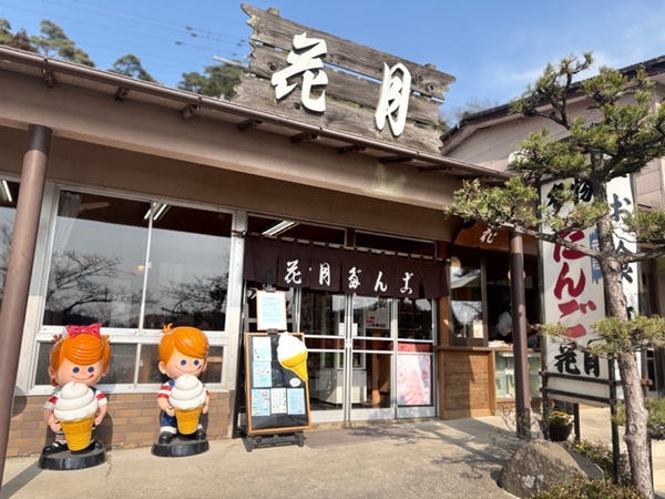 歩いていると、だんご店「花月」のソフトクリームの看板が目に入りました。